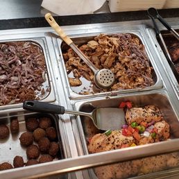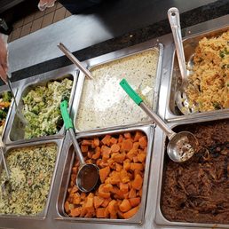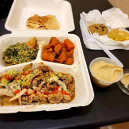 Was looking for a meal before I headed back to the airport and I am so glad that I stumbled upon Aviva by Kameel! Service was top notch with the man himself providing everyone in line samples of their vegan lentil soup and man did that whet my appetite. It was also extra heart warming seeing how genuinely happy Kameel was to be serving great fresh food to his guests. Even if the food was terrible, I would've had a great experience solely due to how great the hospitality was here. Fortunately, the food was also just as amazing as the service! I got a 2 item plate with the lamb and salmon. The lamb was so flavorful and succulent while the salmon was just bursting with flavor. I also got the pasta alfredo as a side and I really wish I got a giant tray of this stuff because it is dangerously addicting. They even threw in a couple of Falafels into the tray for us to try which seems like common practice here and I could not be happier! Lastly, I ended up getting their walnut baklava since they ran out of pistachio and wow just wow... The texture and flavors were simply on point. I was so full that I ended up taking the second baklava back to California to share and it was just as good 3 days later lol Aviva by Kameel deserves all the praise and more. A must try if you're in Atlanta!